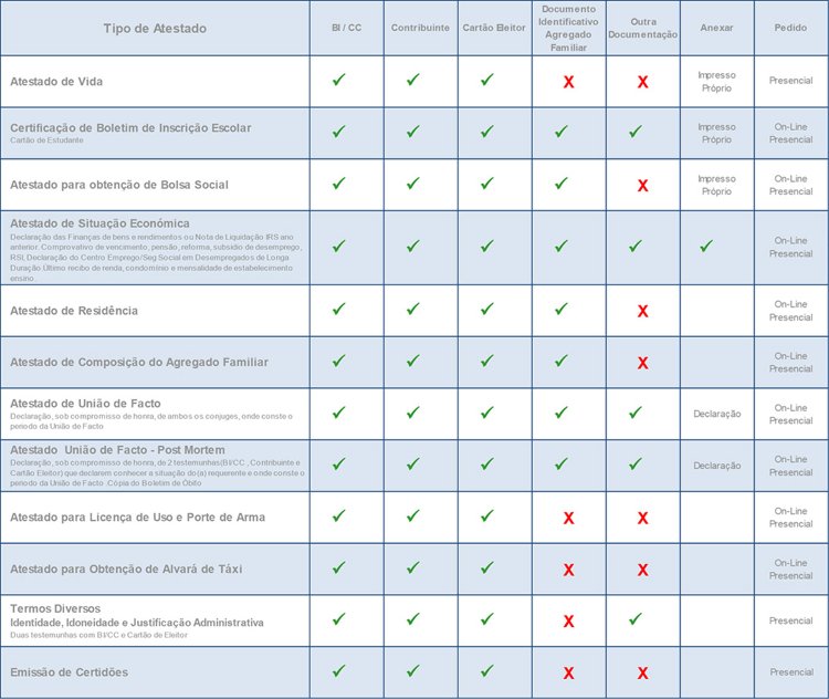Informação sobre a documentação que é necessário apresentar nos nossos serviços aquando do levantamento do atestado:
