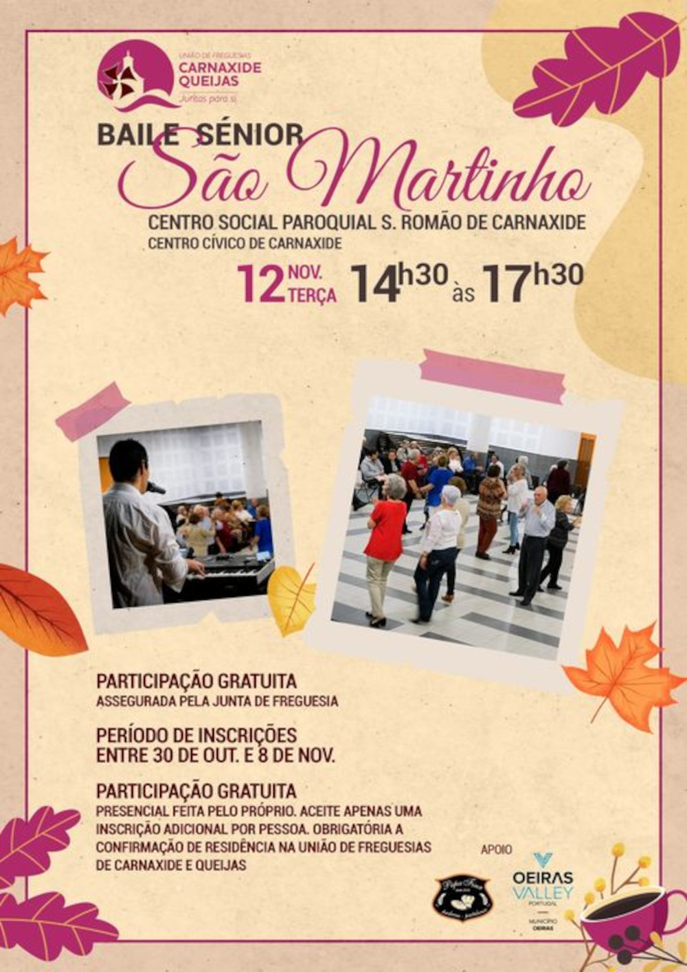 Vem aí mais um baile sénior promovido pela União de Freguesias de Carnaxide e Queijas.