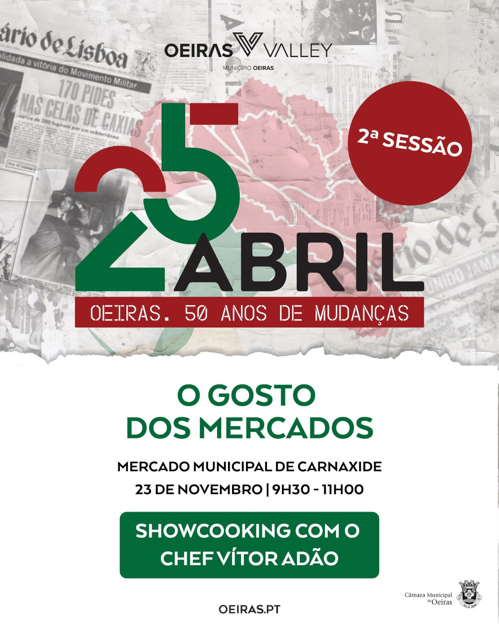 A iniciativa do Município de Oeiras integra as comemorações dos 50 anos do 25 de Abril e realiza-se em parceria com o Congresso de Cozinha.