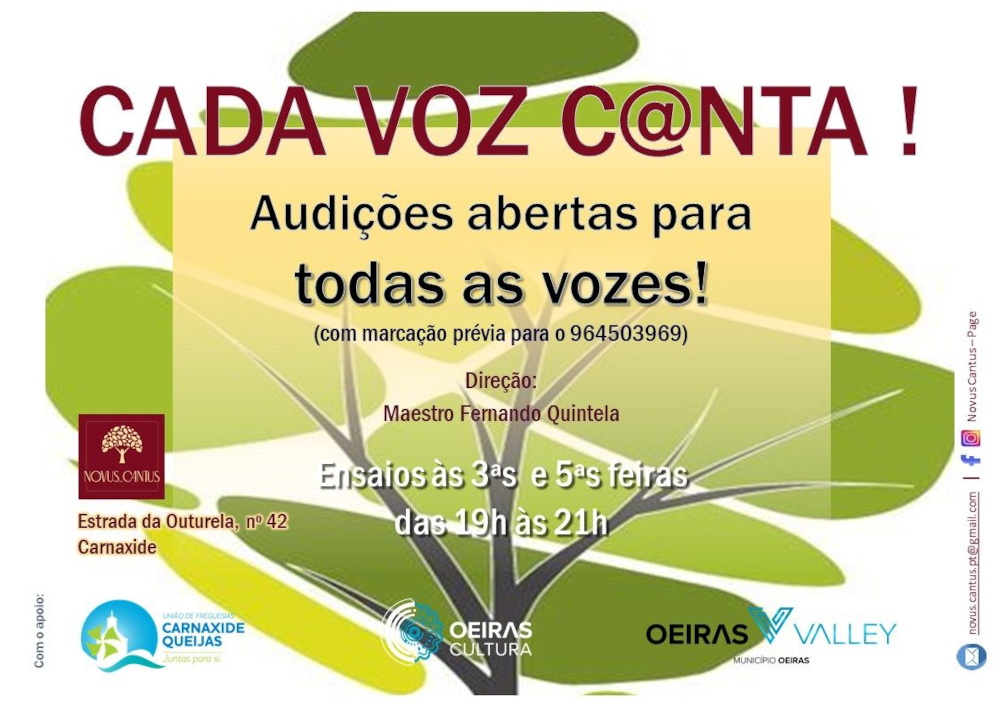 Ensaios às terças e quintas, das 19h00 às 21h00, na Outurela.
