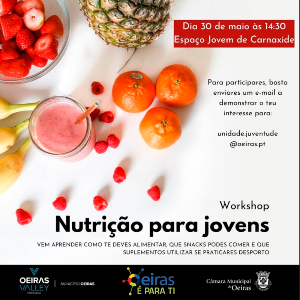 A Unidade de Juventude de Oeiras convida todos os jovens a participarem no Workshop “Nutrição para Jovens”.