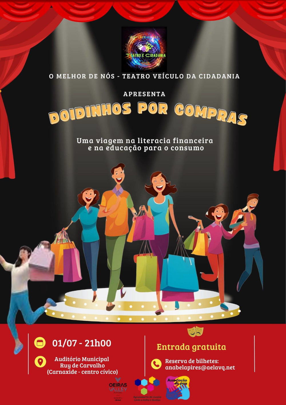 A peça "Doidinhos por Compras" vai estar em cena dia 1 de julho, às 21h00, no Auditório Ruy de Carvalho, em Carnaxide.