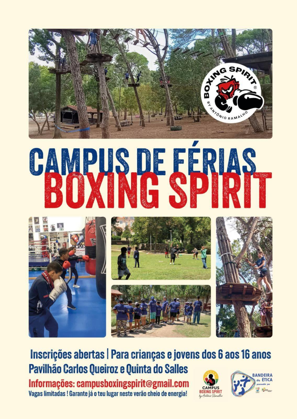 Vem aprender boxe, fazer novos amigos, participar em jogos, desafios e atividades ao ar livre, num ambiente seguro e cheio de energia.