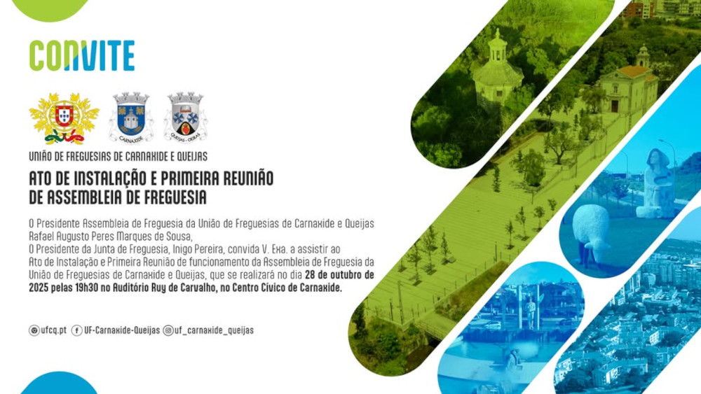 O Auditório Ruy de Carvalho em Carnaxide acolhe no próximo dia 28 de outubro, pelas 19h30, o Ato de Instalação e a Primeira Reunião de Assembleia de Freguesia da União de Freguesias de Carnaxide e Queijas, referente ao mandato 2025/2029.