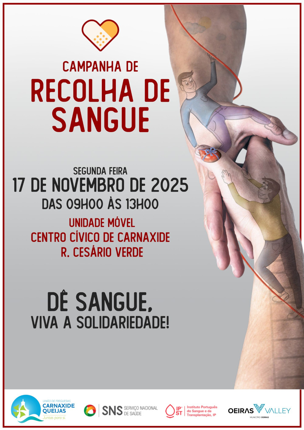 A iniciativa da União de Freguesias de Carnaxide e Queijas e Instituto Português do Sangue e da Transplantação é aberta a toda a comunidade e tem o objetivo de alertar para a importância de manter as reservas de sangue em níveis estáveis.