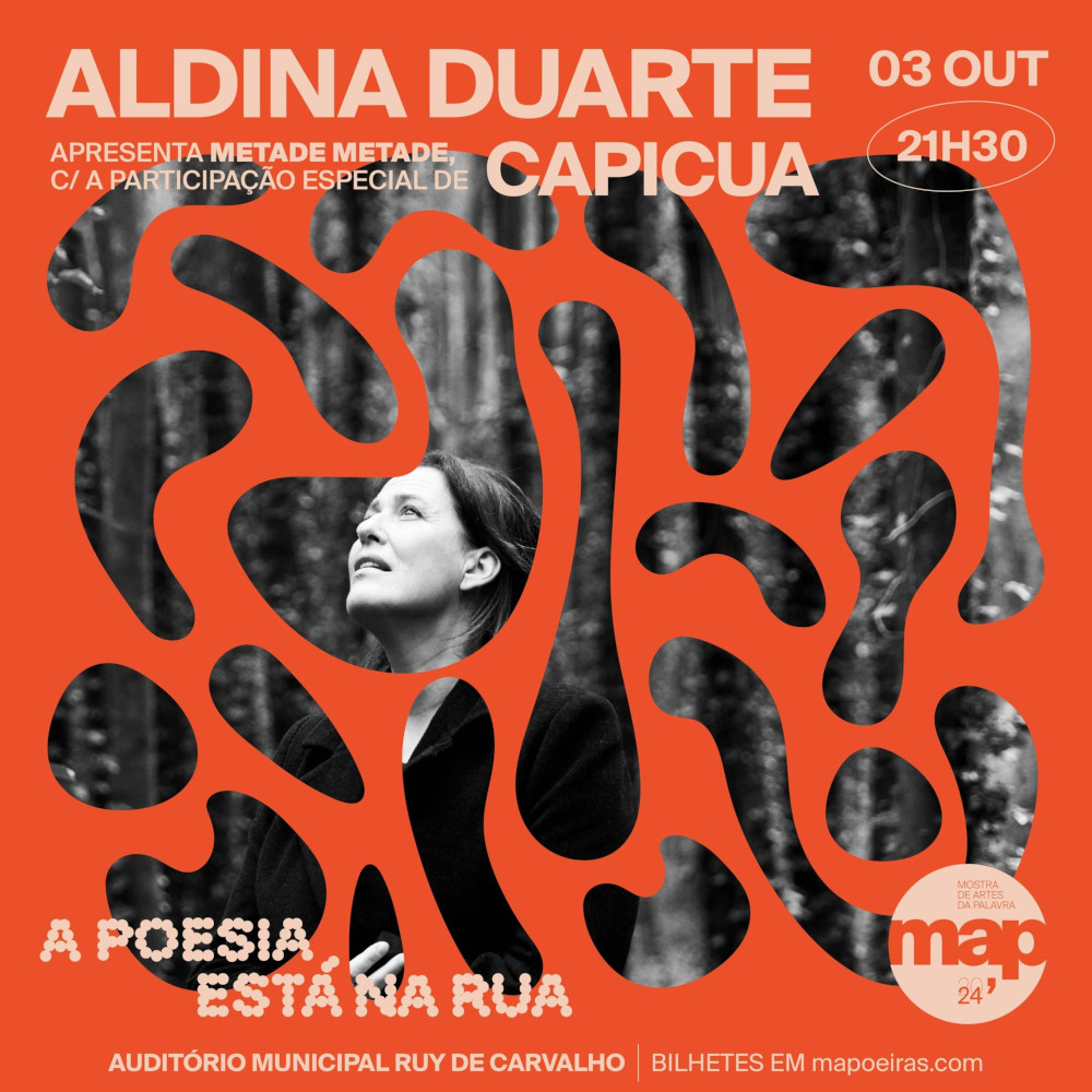 Integrado na rubrica "A Poesia Está na Rua" do festival MAP - Mostra de Artes da Palavra, o Auditório Ruy de Carvalho em Carnaxide acolhe o concerto de Aldina Duarte no dia 3 de outubro, quinta, às 21h30.
