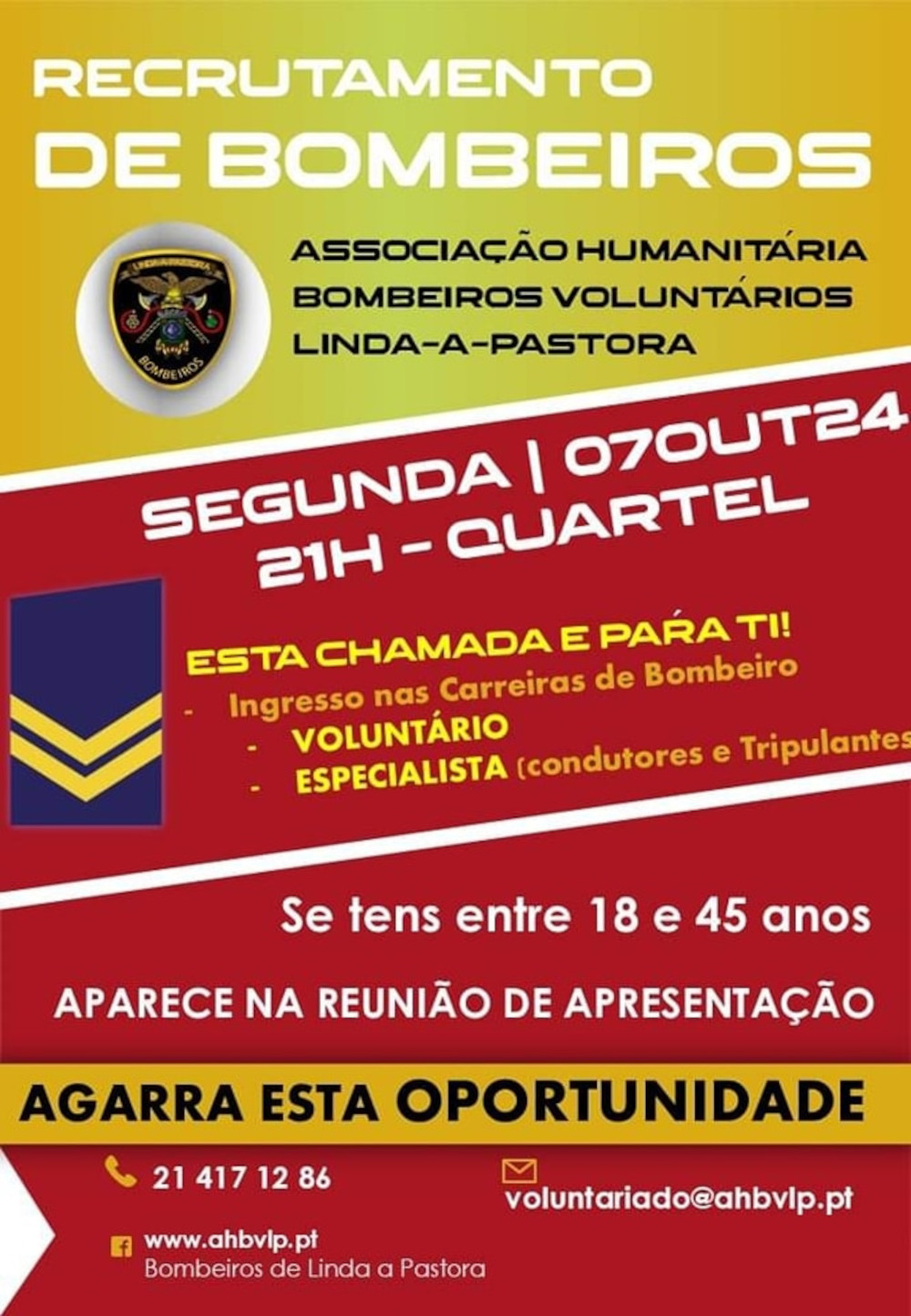 A Corporação de Linda-a-Pastora promove mais uma campanha de recrutamento para bombeiros voluntários.